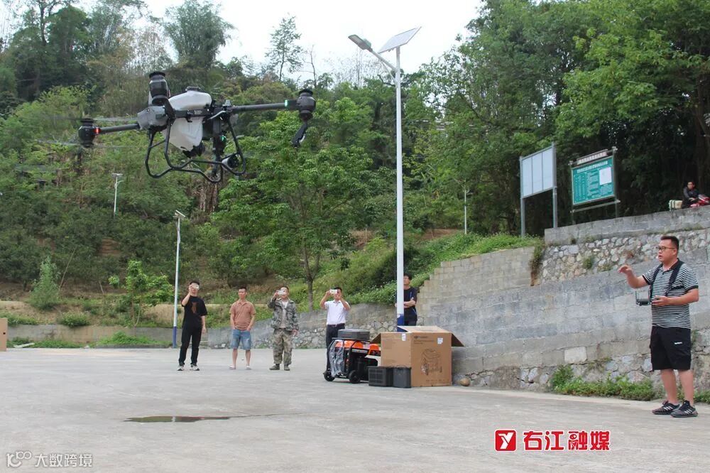 4月7日,在大楞乡罗甫村村部,一架农业植保无人机在技术人员的操作下正低空飞行,在田间地头“大显身手”,一团团白色水雾从机身喷嘴内均匀喷出。技术人员指导村“两委”干部进行航线定位、飞行路线和喷洒作业以及应急处理等系统实训,体验植保无人机在农业生产中的高效与便利。