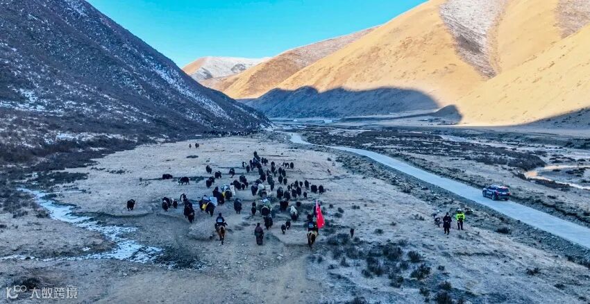 “今天,我们就要跟随长须干玛乡200多户1000多头牦牛,开启从莫日多秋季牧场转场到冬季牧场,将耗时4小时完成转场!”牦牛被牧民和现场护航的民辅警浩浩荡荡地赶往冬季牧场。为了确保迁徙初期草场纠纷零发生,将矛盾化解在萌芽阶段,这次转场石渠警方也参与其中,帮助牧民迁徙。