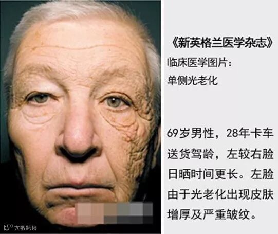 大家看一下这张照片,特别能说明光老化的严重性。