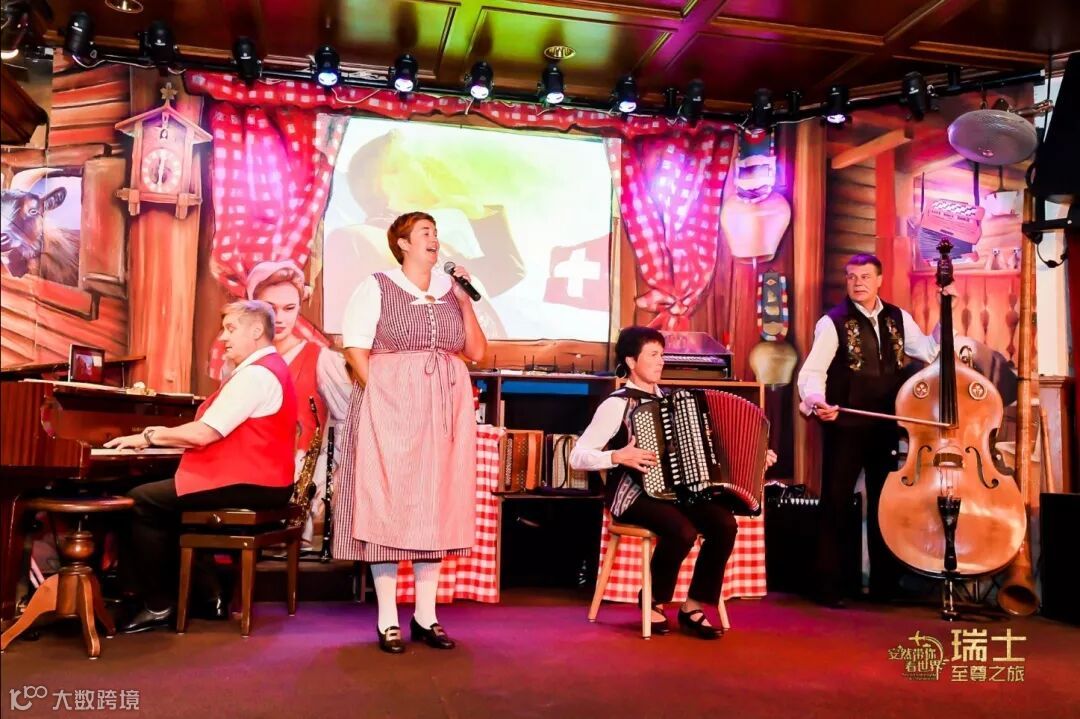 在瑞士当地唯一有特色表演的餐厅,安然贵宾们一边品尝着瑞士特色的晚餐——奶酪火锅、三道式西餐,一边欣赏着独具特色的表演,快乐和幸福洋溢在每一位家人的脸上。