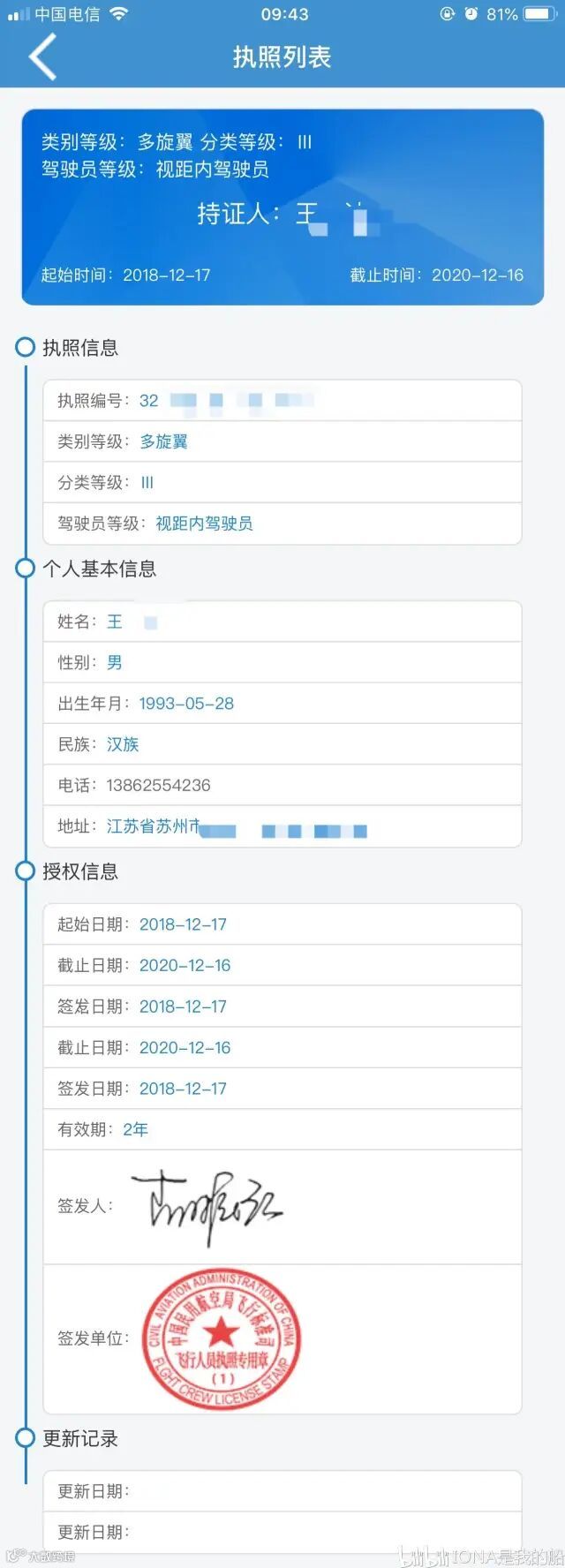 1. 由民航局颁发《民用无人机驾驶员执照》(电子执照)
