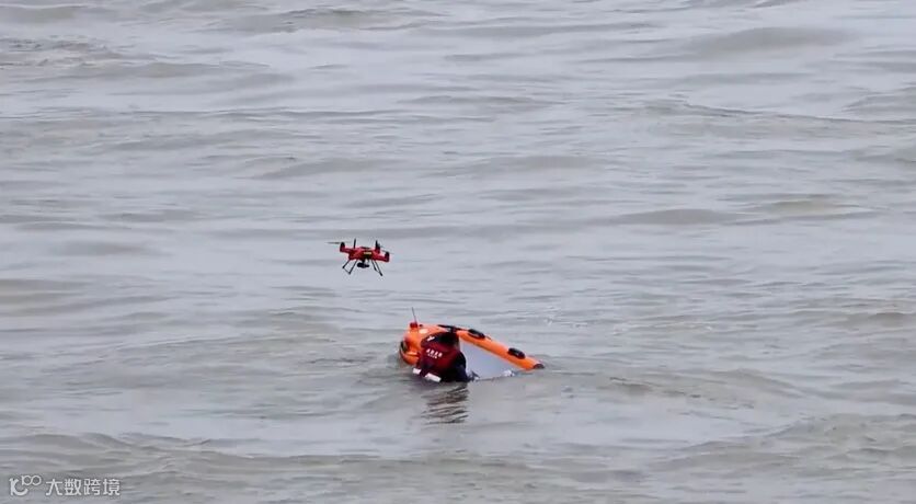 在本次抢险救援演练中,水手4防水无人机主要任务是在高空巡查水面情况,及时发现涉险人员,投递救生设备,进行水域救援行动。它还可以沿着汛期危险河段、水域巡检,持续监测水位变化,并将信息远距离传输至遥控器。为整体战略部署提供了高空画面,展示出更全面的现场情况。