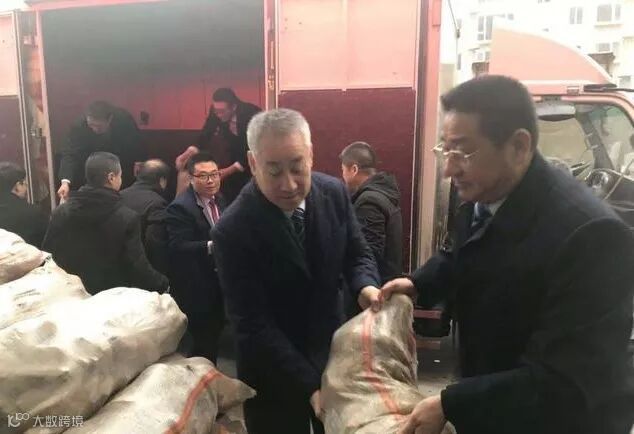 ▲安然志愿者联盟代表、安然公司七星董事杨树才先生帮忙卸车