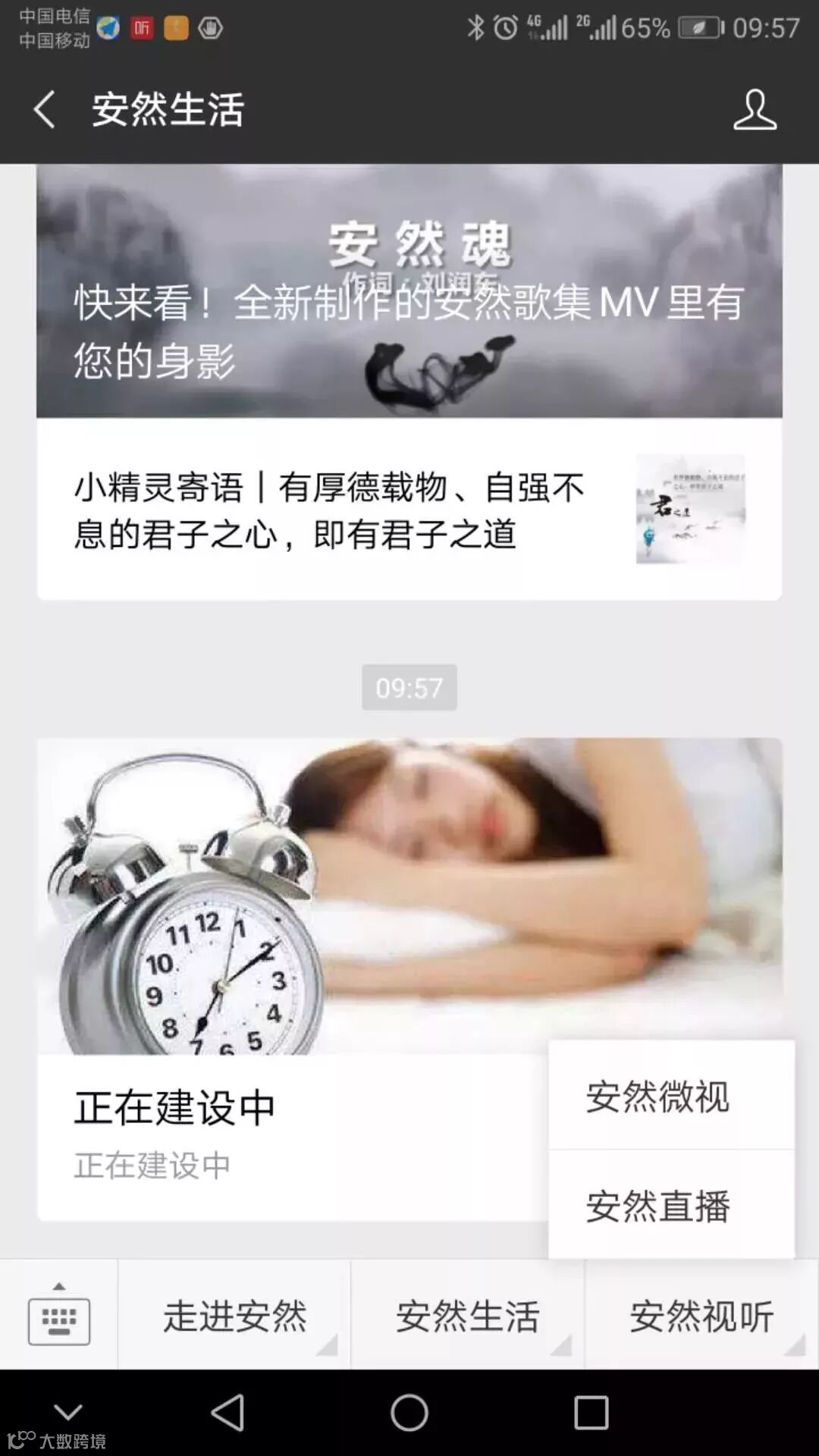 通过点击《安然生活》公众号下面的菜单中的“安然视听”里的“安然直播”进行观看。