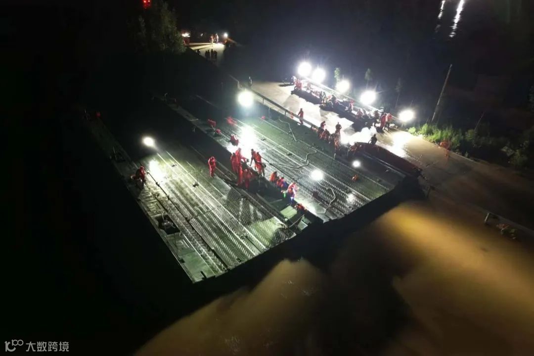 该应急动力舟桥是目前国内最为先进的水上救援装备之一,可实现快速架设浮桥和结合漕渡门桥,组合成各种形式的浮式结构,保障大型装备和人员通行,有效解决涉水抢险难题。