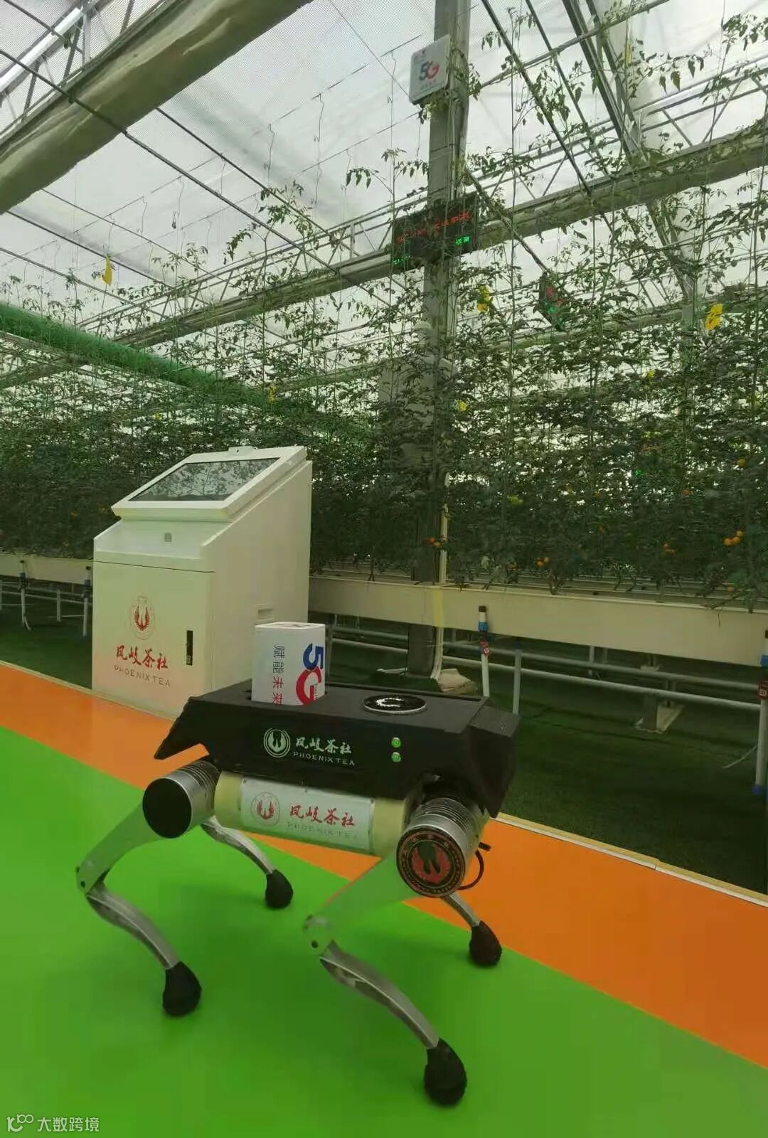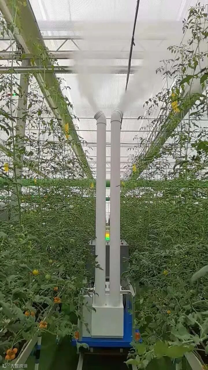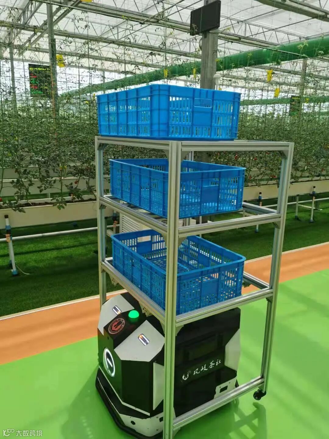 在一拢拢的番茄中间,一个黑色的机器人“熊猫”, 是温室内的自动 “搬运工”,背着蓝色的框在田间移动,能够配合地面轨道机器人完成采摘后的搬运工作;“泰山”室外搬运机器人则能把“熊猫”送到温室门口的采摘果实,搬运到加工配送中心或者物流运输点;“云雀”空中轨道机器人则“栖息”在温室区域环境顶部的自动轨道上,360°实时监测各区域的空中作业场景,感知各项数据指标,监测作物的生长表现和病变情况;国内首个应用在农业领域的四足机器人——“龙犬”在云棚系统中进行自主巡检、环境数据感知、自主导航、数据回传等作业……