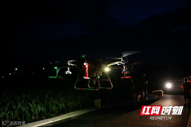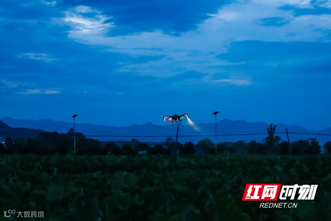蓝山:无人机夜间飞防忙