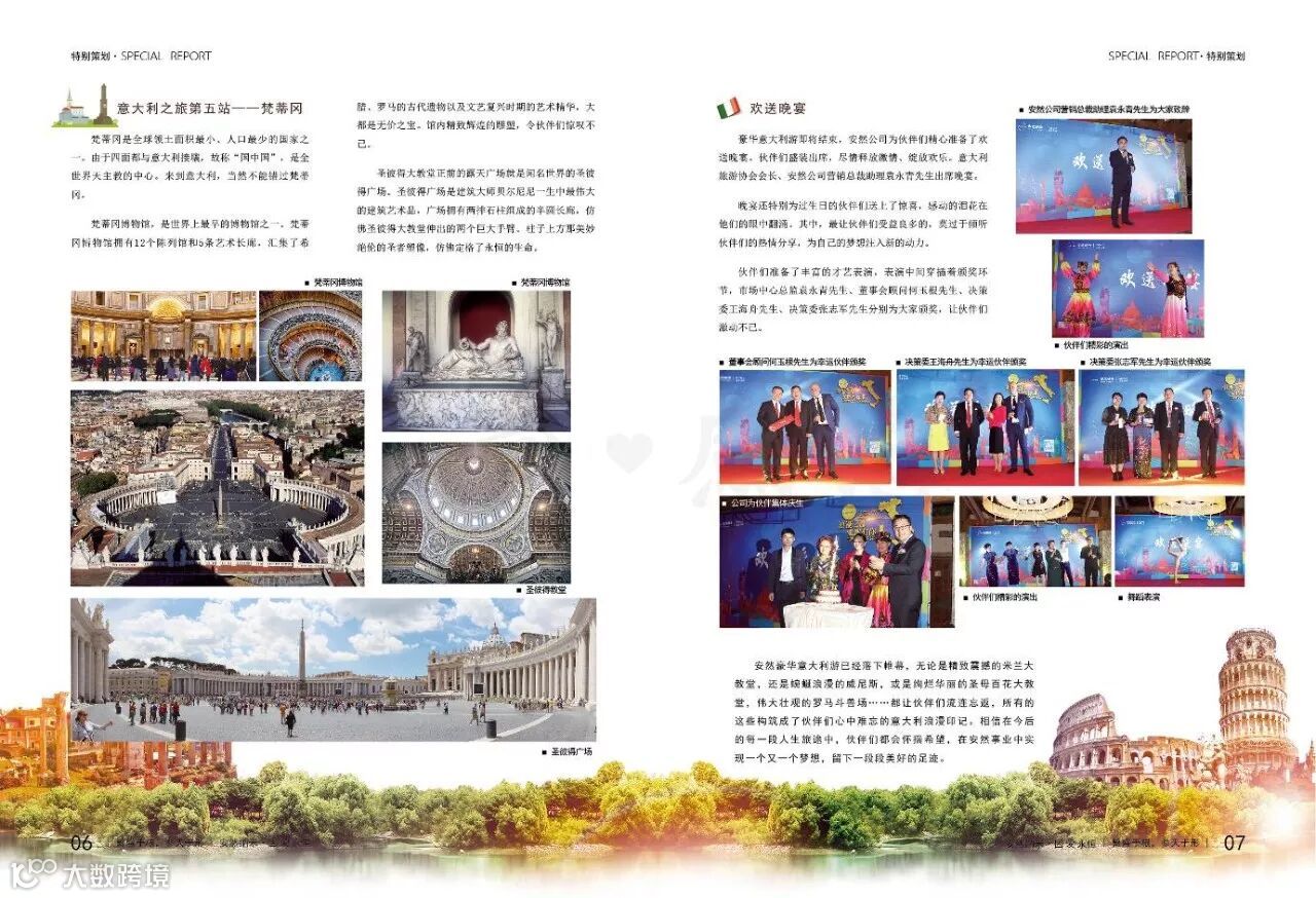 内容简介: 2017年10月11日-16日,浪漫之都 安然有你——安然纳米2017意大利豪华游隆重开启。在金秋十月的收获之际,伙伴们开启了在摩登中徜徉,在艺术中栖息的浪漫之旅。本期特别策划,为您展示伙伴在意大利的豪华之旅。