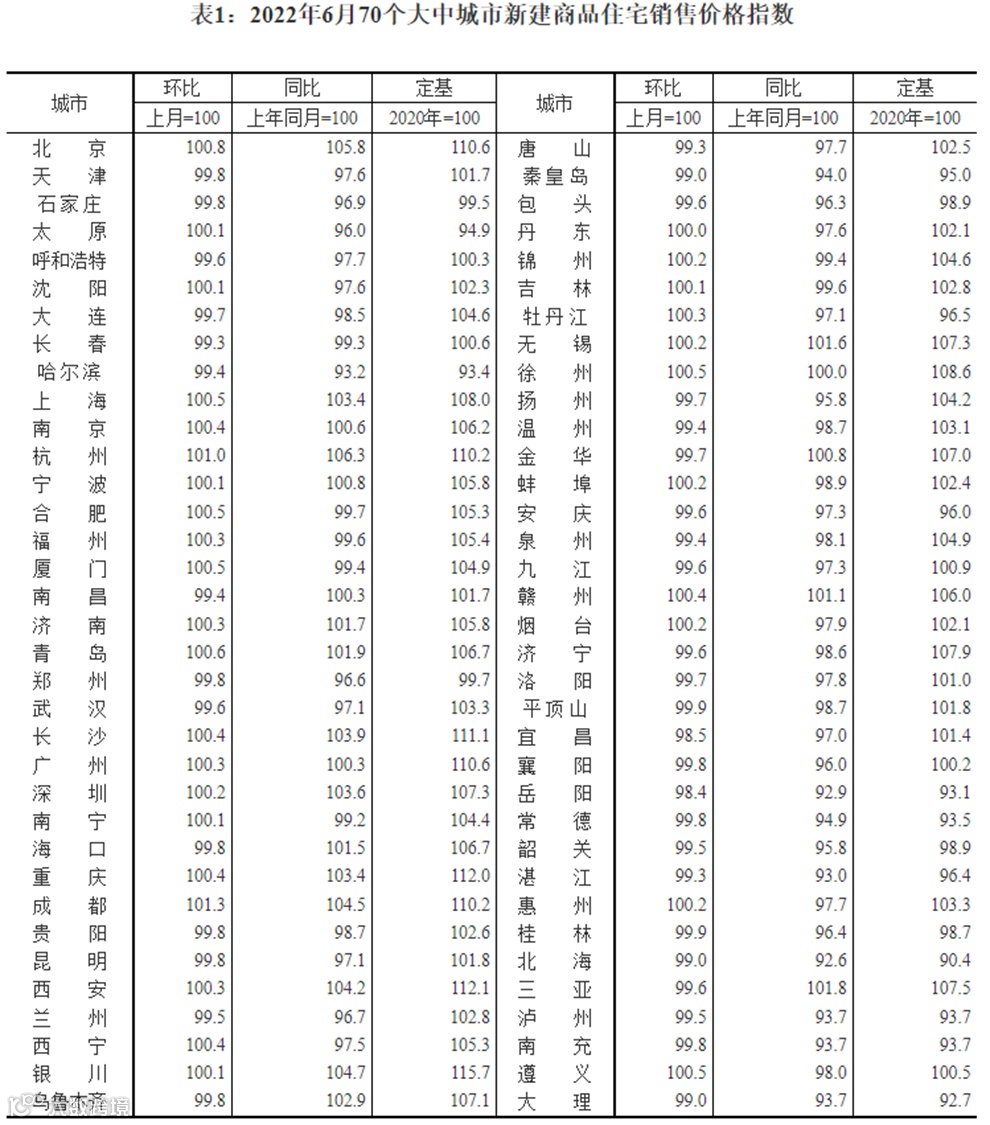 7月15日国家统计局发布了6月份全国70个大中城市商品住宅价格变动情况。