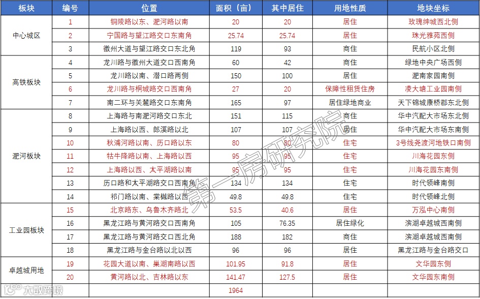 目前,合肥第三批次集中供地官方信息尚未出炉,网传消息与实际情况会存在一定的差别,表格中所列地块也并非官方数据,仅供参考。