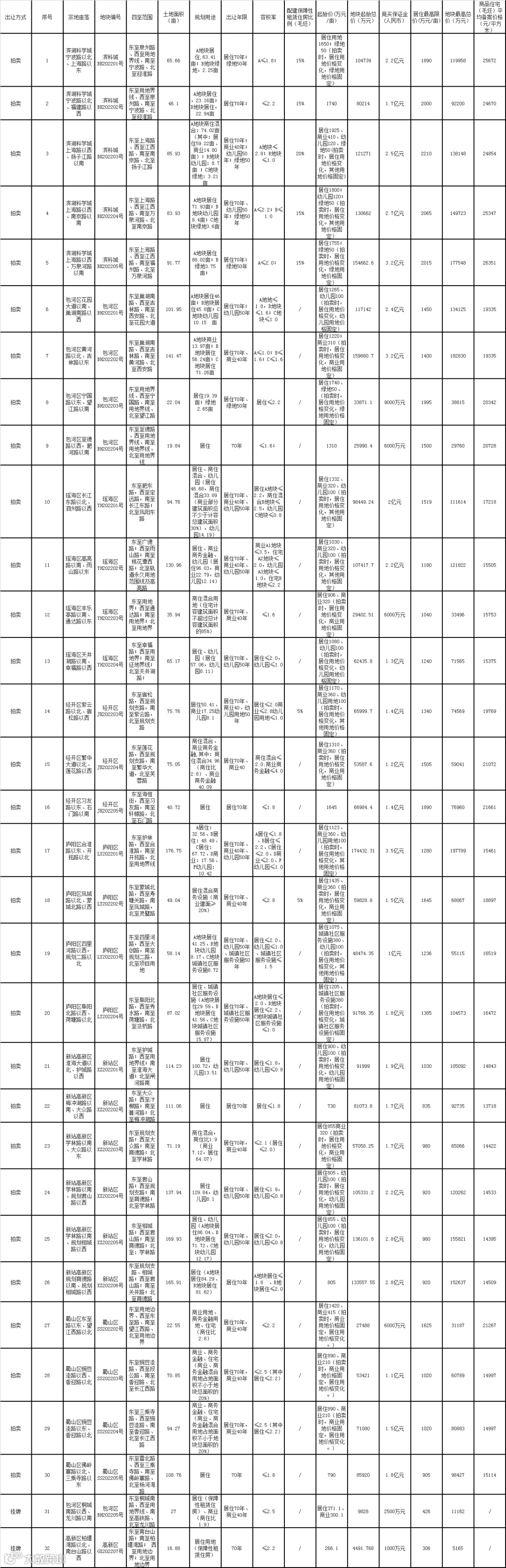 2、本次公告所有地块拍卖起始时间为2022年3月17日上午9时,依场次安排进行。