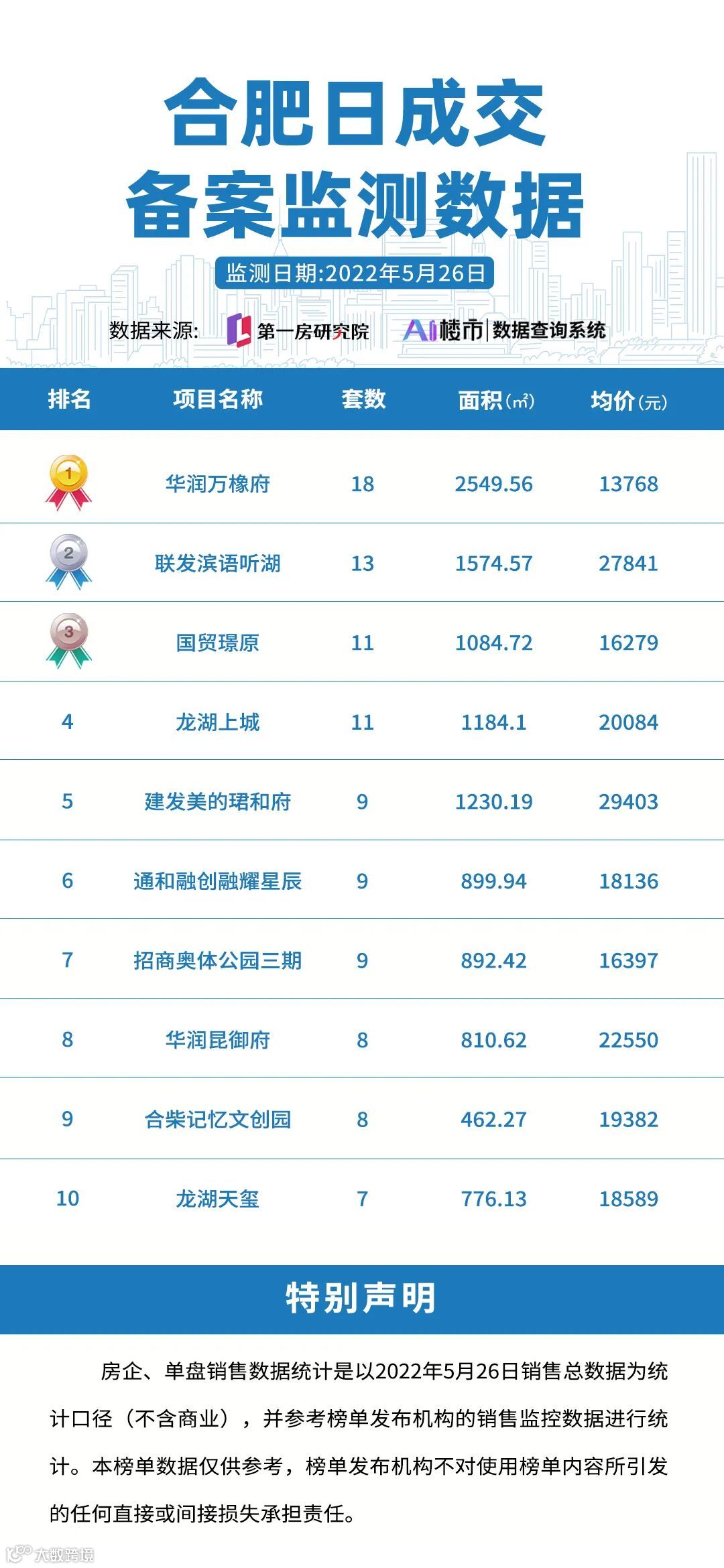 导读:5月26日合肥市区备案住宅类商品房154套,备案均价20388元/㎡。本日楼盘备案TOP10中,第一名,华润