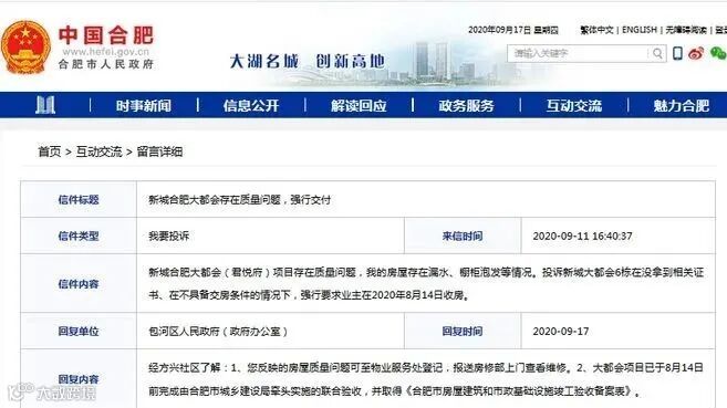 布局有问题,建筑品质也遭到广泛诟病。新城大都会、肥东吾悦华府等项目在交付时和交付后都遭到维权投诉,房屋漏水、橱柜泡发、电梯质量等问题比比皆是。这样看来,新城在拿地、销售、交付各阶段均遭遇滑铁卢,即使能够在市场震荡下侥幸存活,后期预计也很难在愈发注重品质的住宅市场上站稳脚跟了。