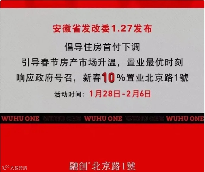 1月27日,安徽省发改委26日发布《关于印发进一步做好近期促进消费工作若干措施的通知》,明确鼓励购房领域降低首付。通知显示,以满足外出务工春节返乡人员消费需求为重点,引导房产、汽车、家电销售企业在春节消费旺季,通过分期免手续费、赠送抵扣券、降低首付比例、补贴置换等方式,扩大大宗商品消费。