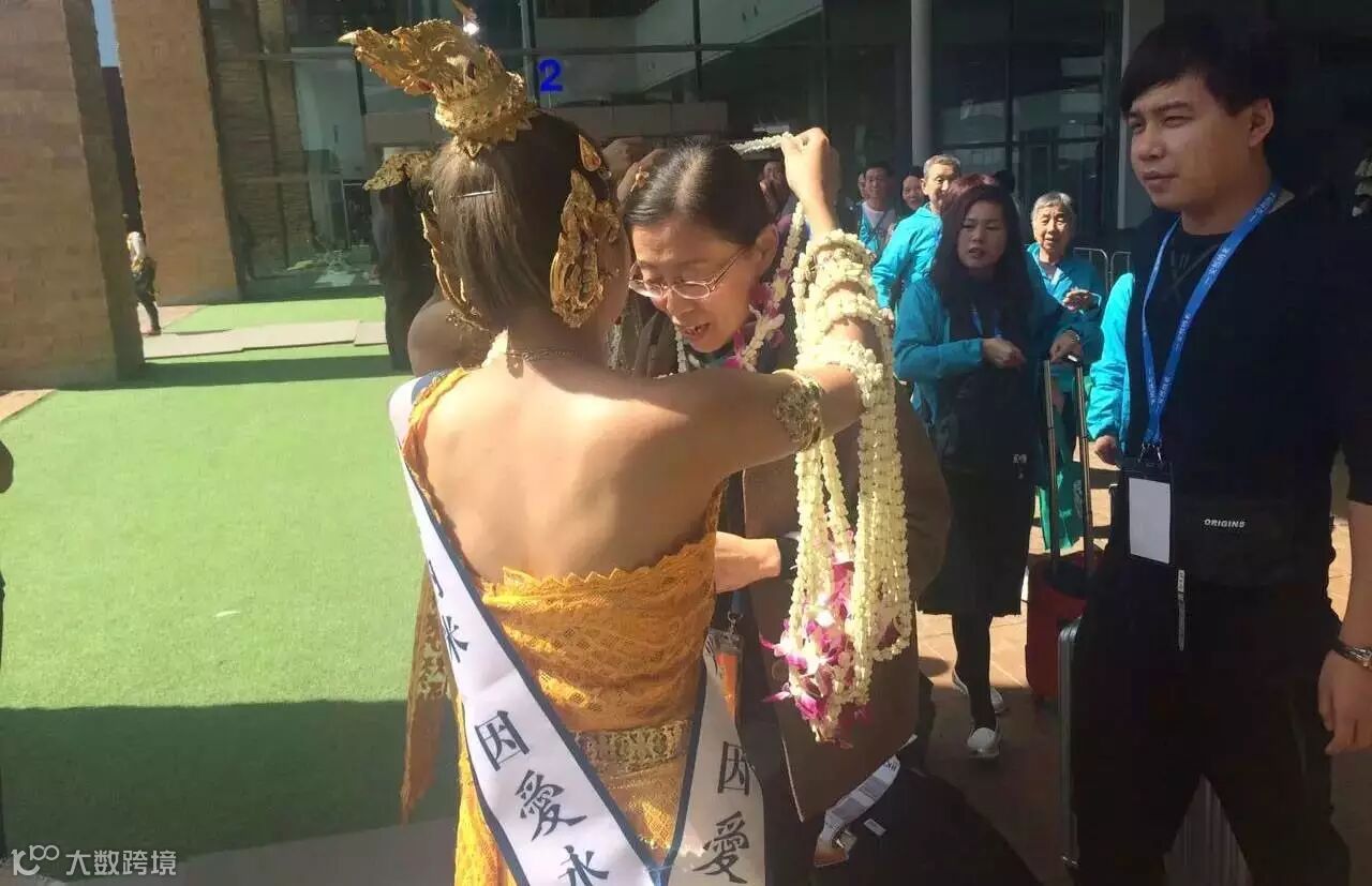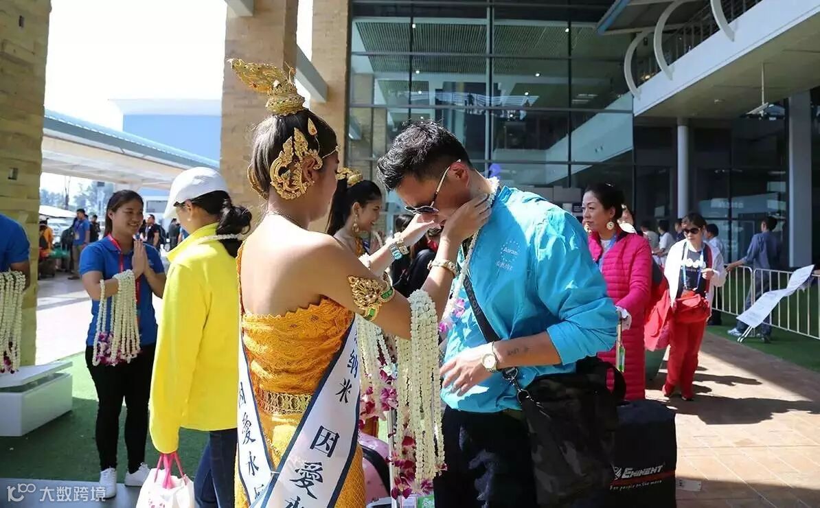 安然家人初到泰国,刚刚走进抵达大厅,身着泰国特色服装的姑娘热情地前来迎接,送上欢迎的花环。
