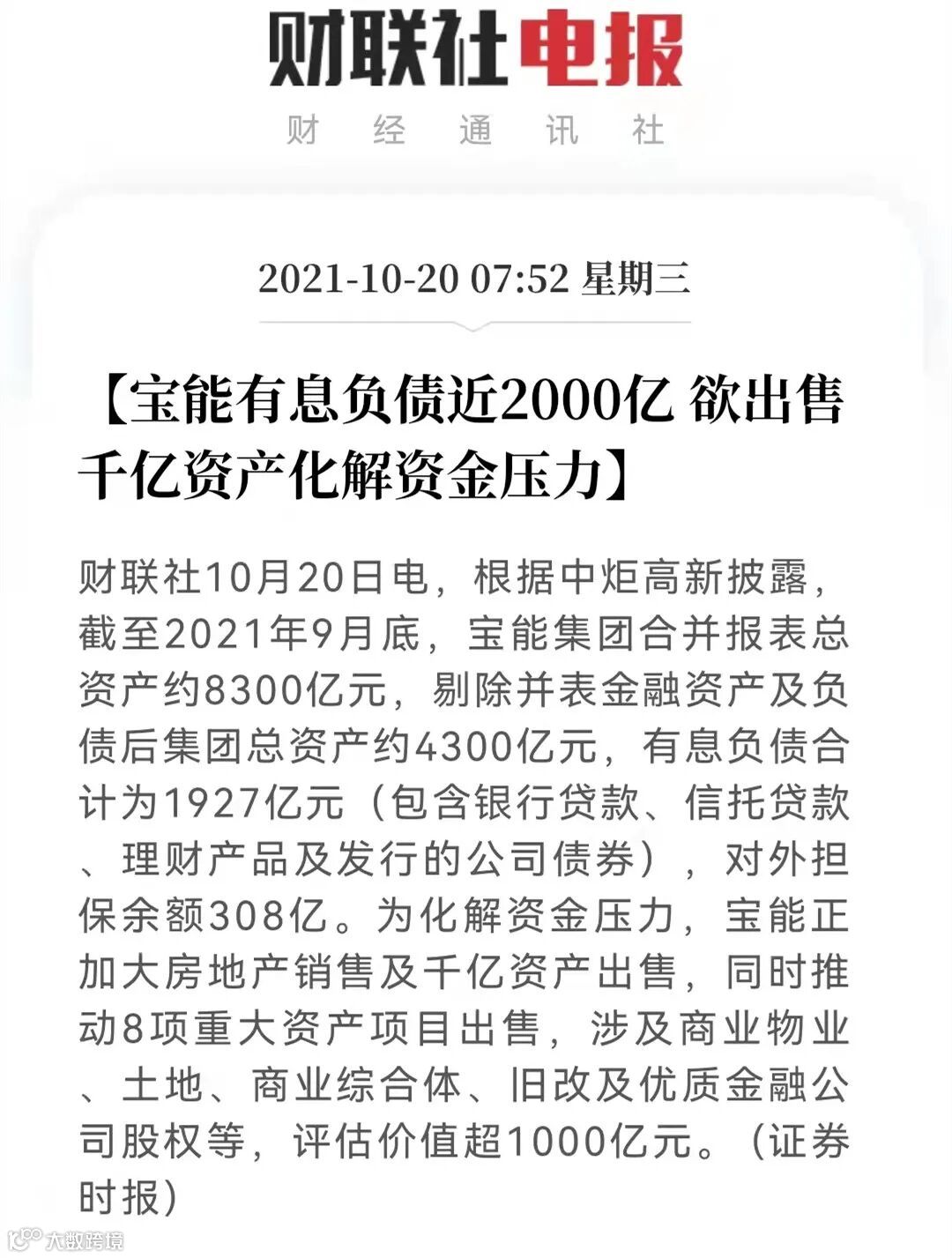 去年9月底,宝能集团有息负债约1927亿元,对外担保余额308亿,以至于准备出手千亿资产化解资金压力。