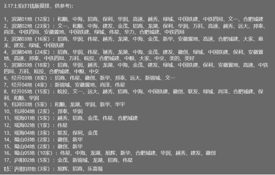从土拍报名可以看出,一线中海,招商,保利,华润房企集中报名了滨湖和少数经开和蜀山地块。这也意味着对于央企国企来说利润第一,其次,央企责任重大,布局广阔,目前市场还有大量风险企业地块需要实力强劲的国企央企承接,特别是一线央企责任在身,难以在合肥市场大量拿地。