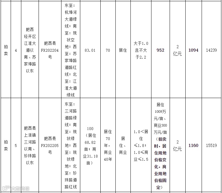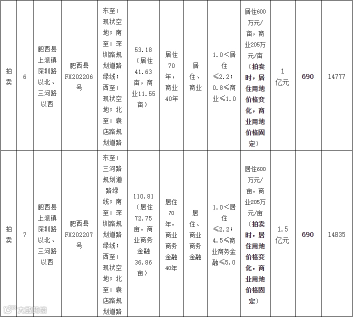 2、庐阳主城区和四里河板块,分别有约50亩和77亩地块供应。