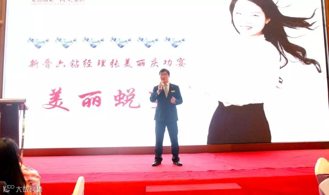 2016年11月9日,以“美丽蜕变”为主题的张美丽女士荣升六钻经理表彰会在合肥举办。安然公司华东区副总监吴伟达先生、安然合肥分公司经理鲍江跃先生、优秀体系领导人汪华先生和钱凤女士及众多安然伙伴参加表彰会。
