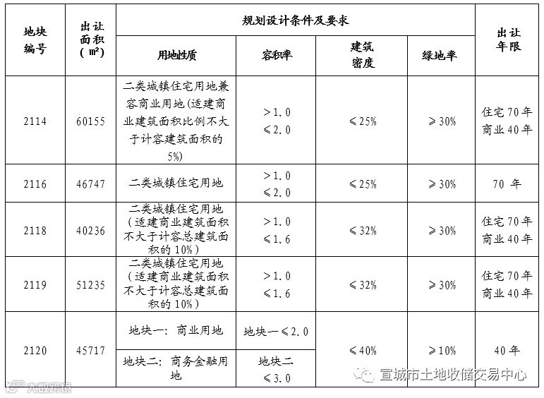 2021年12月14日,宣城市自然资源和规划局在宣城市公共资源交易中心公开出让了编号为2114号等五宗地块国有建设用地使用权。