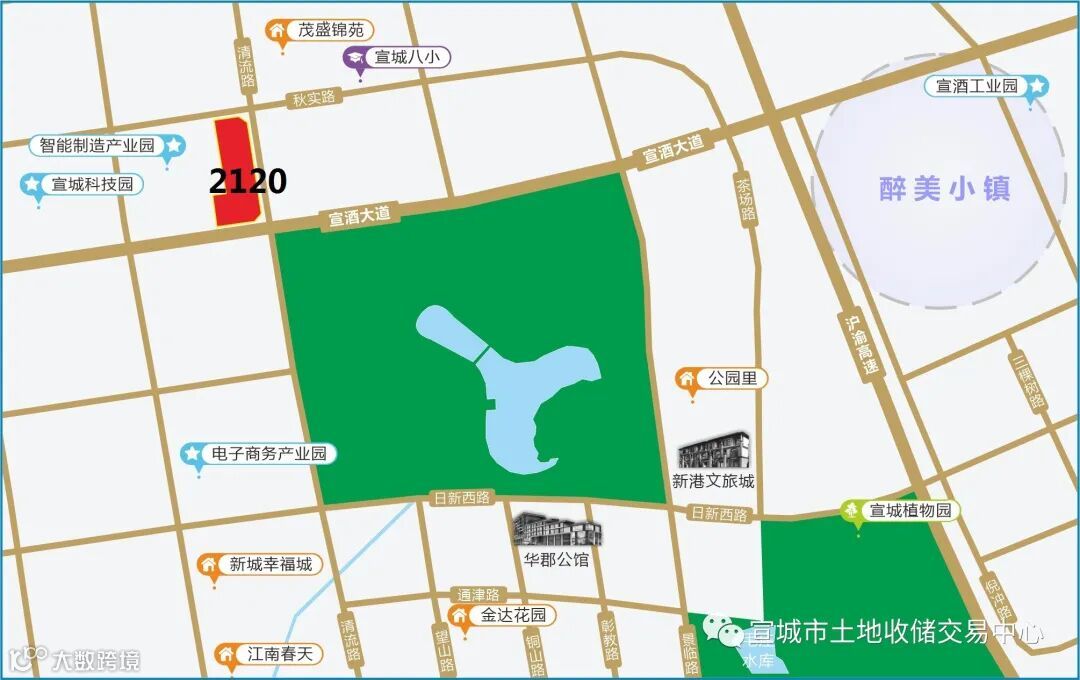 2120号地块位于清流路与宣酒大道交叉口西北角,出让面积45717平方米(约68.58亩)。最终由宣城市开达建设投资有限公司以人民币180万元/亩竞得。