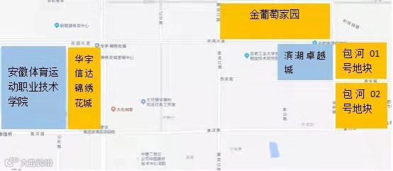 一路之隔。离大圩镇政府较近,地块紧邻滨湖卓越城、与滨湖区一路之隔,但周边配套有待提升。交通方面,临近花园大道、南淝河路主干道,离最近的地铁5号线花园大道站有4公里左右的距离。商业资源就比较匮乏了,但大圩生态园离地块约2公里,教育资源方面,2公里内有多所学校,如合肥48中教育集团包河中学、合肥市