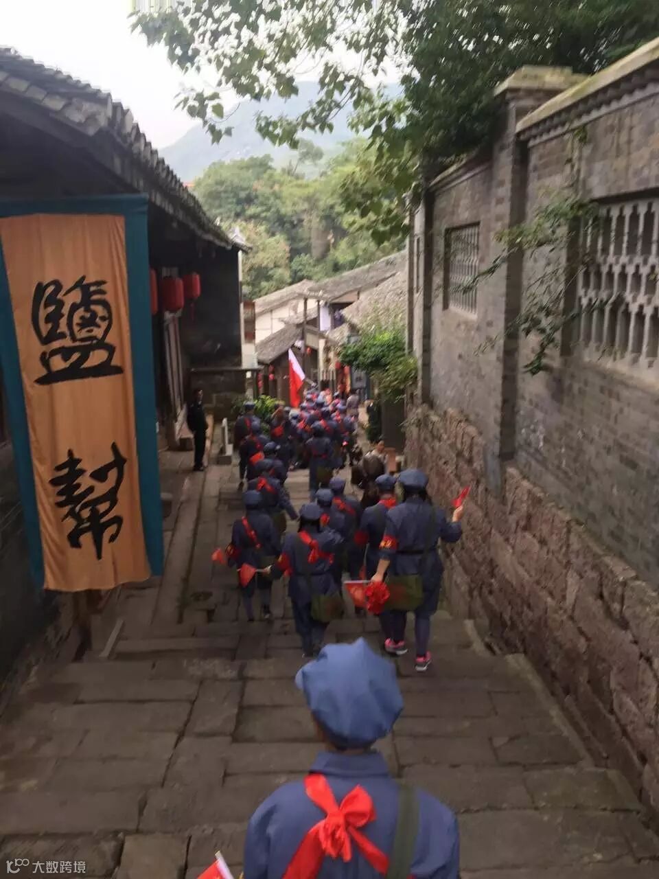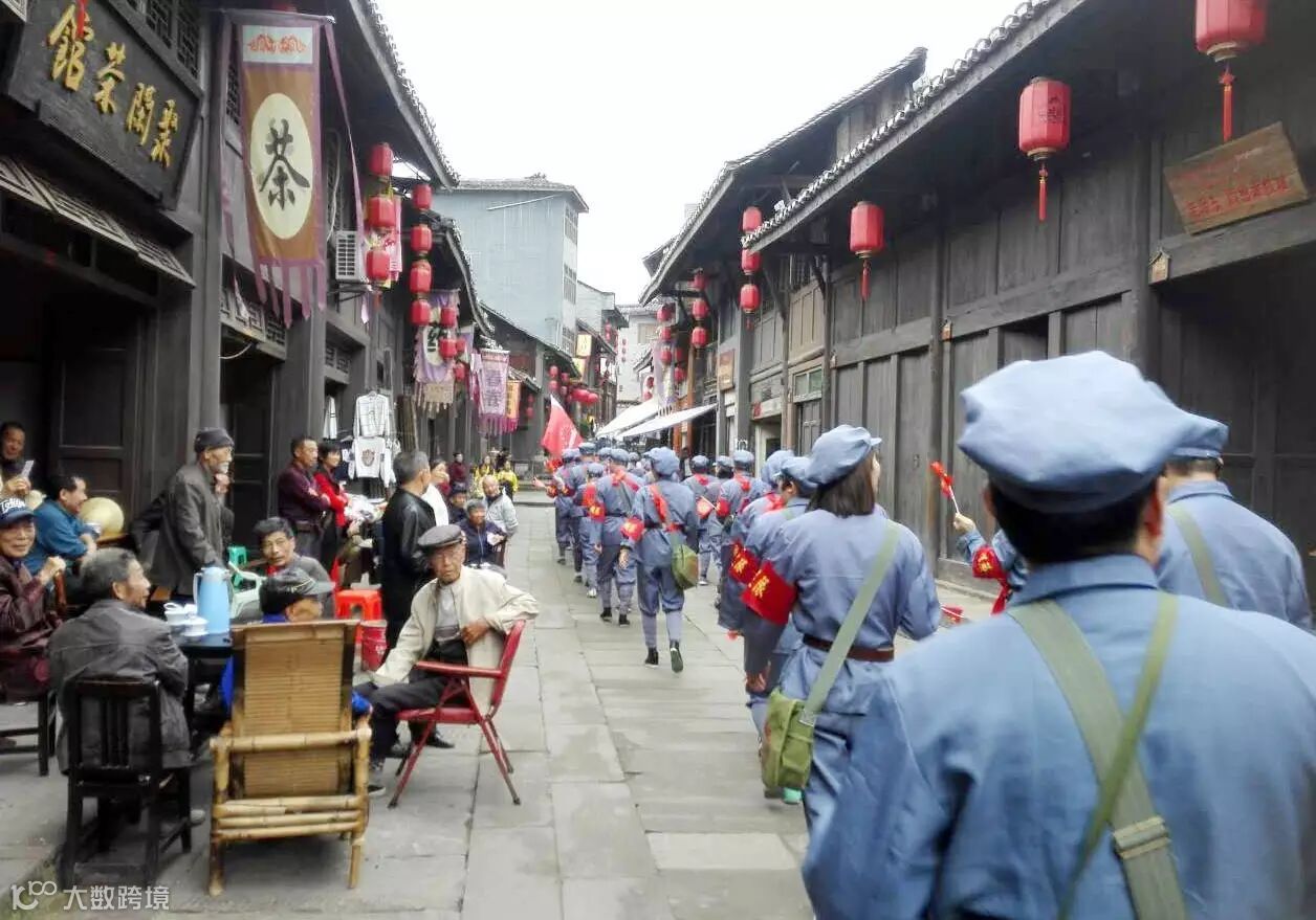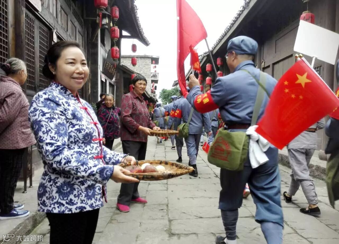 伙伴们穿越土城古镇,中途当地村民夹道欢迎,重现当日胜利场景 。