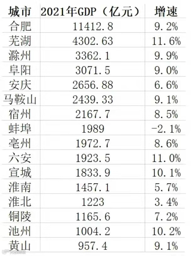 导读:近日,安徽16市陆续发布2021年GDP数据。人民网安徽频道统计发现,合肥、芜湖、滁州三市继续领跑。增速方面