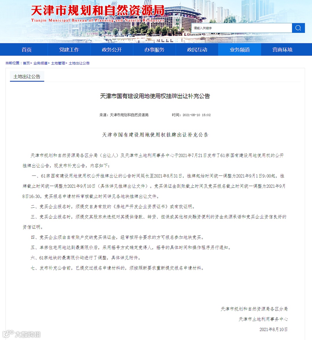 1、61宗住宅用地出让公告时间延长至8月31日,竞买保证金到账截止时间及竞买报名截止时间调整至9月8日16:30。