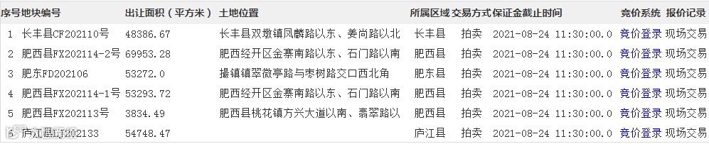 而根据合肥市土拍网消息,8月27日,肥西、肥东、庐江、长丰四县共有6宗地出让,其中5宗为居住用地。