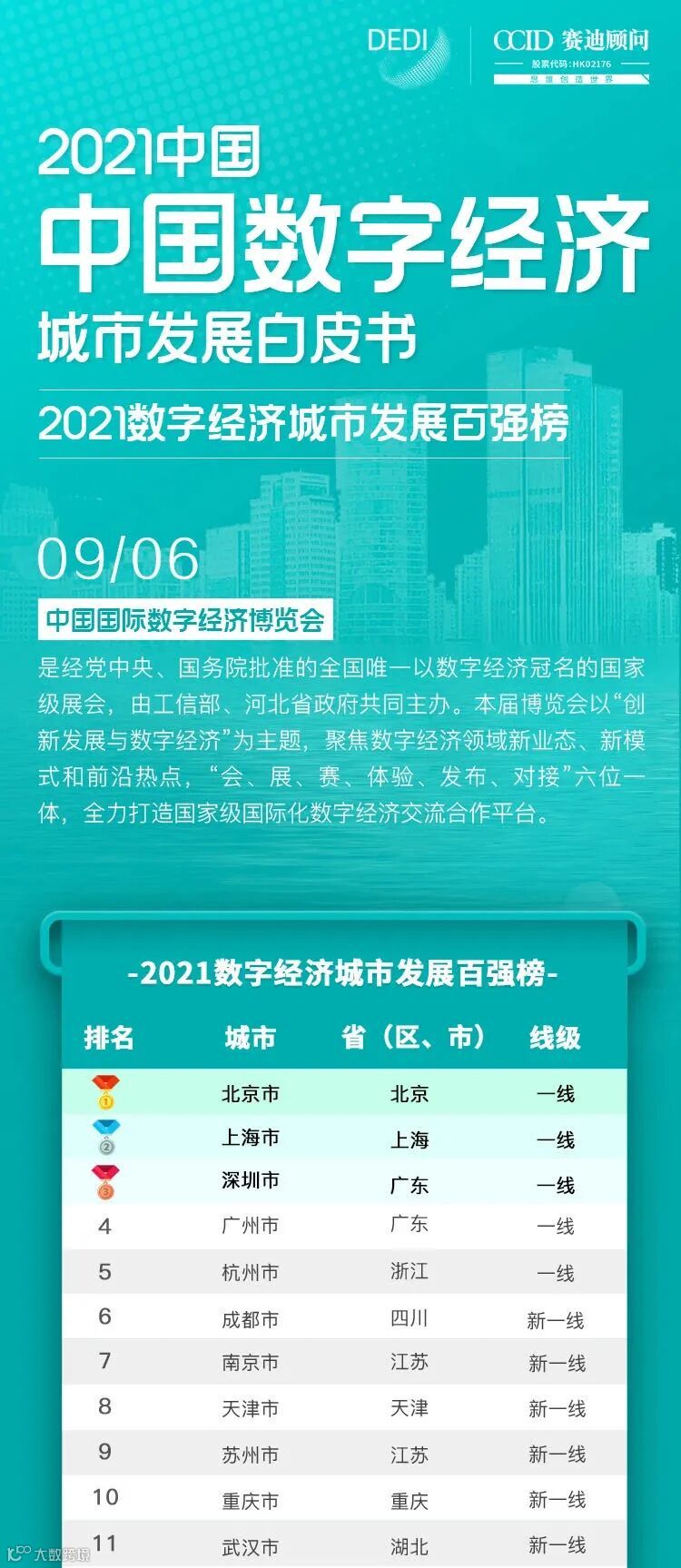 9月6日,赛迪顾问数字经济产业研究中心发布《2021中国数字经济城市发展白皮书》。