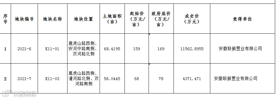 安徽联颐置业有限公司竞得鹿虎山路西侧的1宗商业用地和1宗住宅用地。