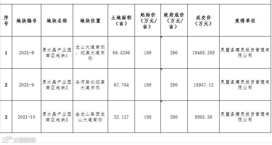 宿州市灵璧县8宗土地使用权成功出让,其中4宗为兼具住宅和商业用途的地块。在这4宗中,有3宗位于原水晶产业园南区,分别为2021-8、2021-9、2021-10号地块,均由灵璧县建灵投资管理有限公司竞得。