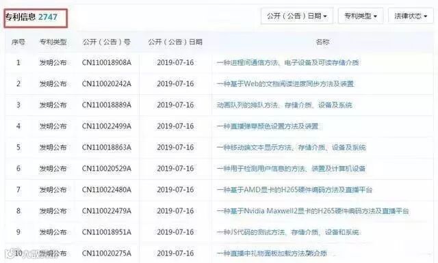 截至目前,斗鱼已经积累了近3000件专利申请数量,专利实力居游戏直播领域首位。