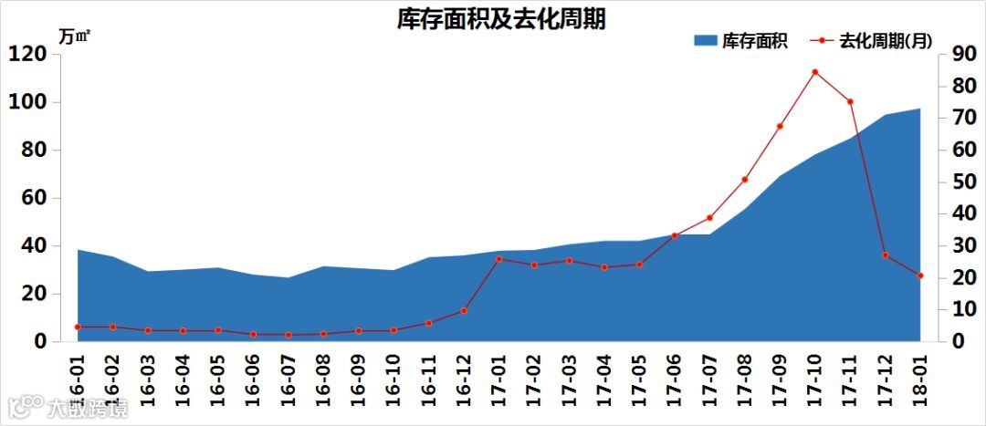 截止2018年1月31日,高新区商品住宅可售面积环比增加2.81%,由于分级备案制度,很多楼盘不能及时网签备案,所以实际的库存远没有这么多;去化周期缩短至20.6个月,去化压力一般。