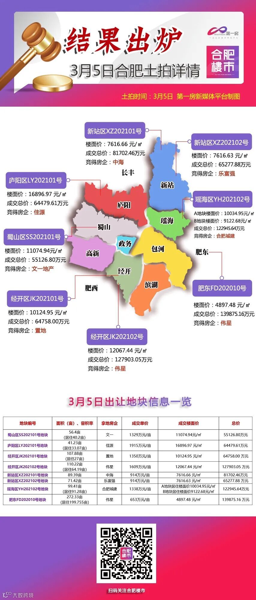 合肥土拍丨8宗地全部最高限价出让,总揽金72亿元,经开一地块竞自持超5万㎡