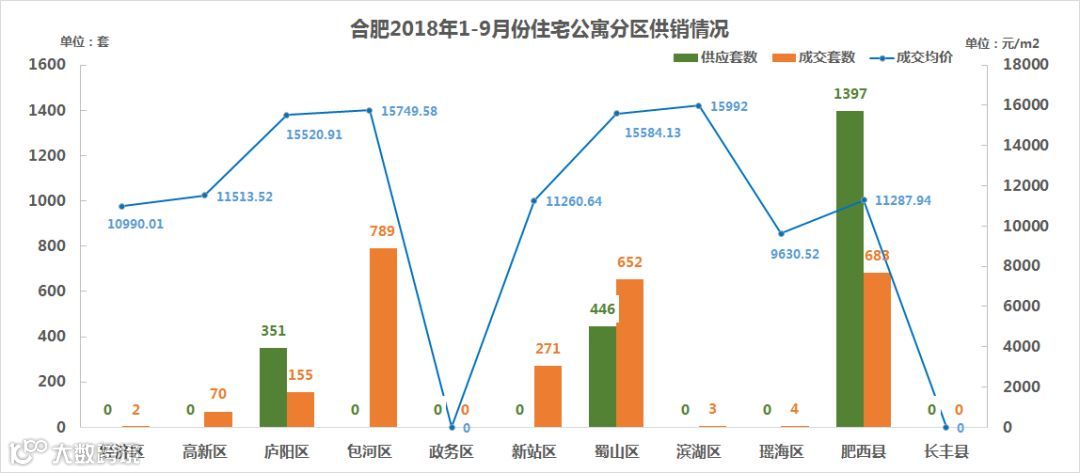 成交量方面,包河区成为合肥市前9个月70年公寓成交量最多的区域,达到789套;