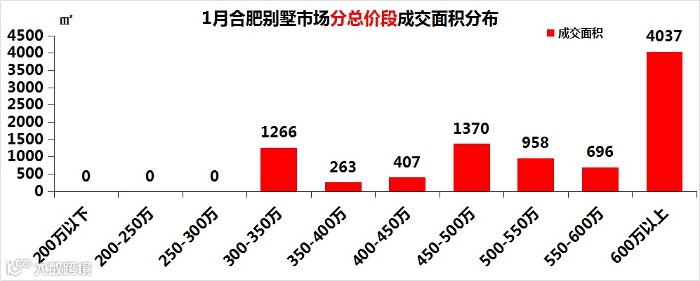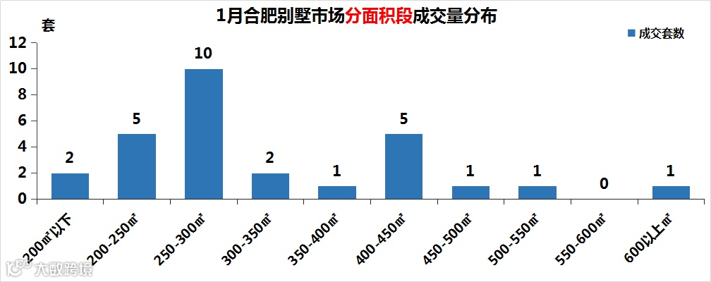 从分面积段成交来看,1月合肥别墅市场以250-300㎡的户型为成交的主力,共成交10套,成交套数占比35.71%;其次是400-450㎡的户型,成交了5套。