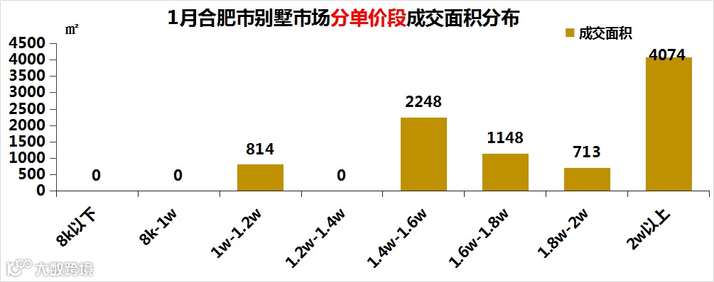 1月份,合肥共成交28套/8997.49㎡别墅,成交金额1.85亿元,均价为20577.9元/㎡;供应量为63套/18868.77㎡,供销比为2.1,市场供大于求。