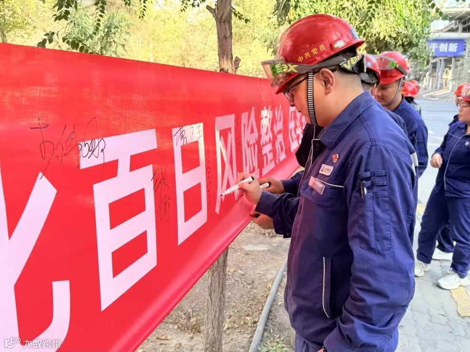 近日,氯乙烯车间全体员工齐聚生产现场,在"深化百日风险整治 压实安全责任护航生产安全"的安全横幅上郑重签名,一笔一划间凝聚着员工对安全生产的坚定承诺,也掀起了车间百日安全生产风险专项整治工作的热潮。