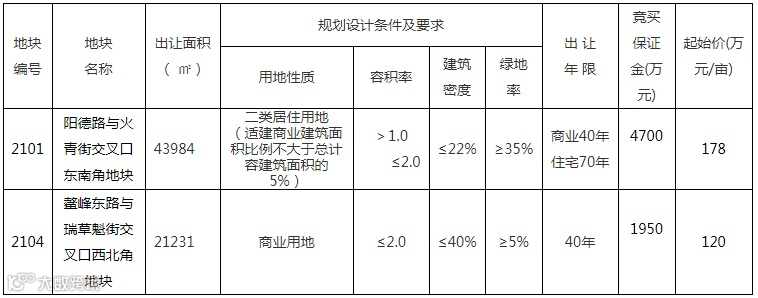 位于阳德路与火青街交叉口东南角2101号地块面积约43984平方米,土地用途为二类居住用地。