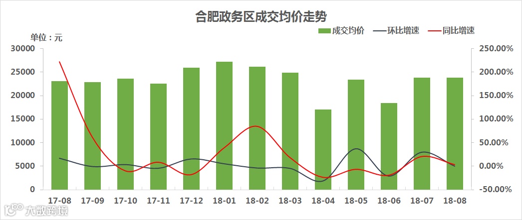 今年8月份,政务区成交均价为23821.83元/㎡,环比微跌0.09%,同比涨3.25%。