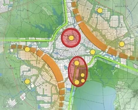 “双心”是指位于老城区的“老城中心”和位于滨湖新区的“新城中心”,“双心”强化提升了城市的服务功能,彻底打破了过去单中心城市结构。“两扇”则位于合肥的西北方和东南方,两个扇形区域主要开展生态发展现代服务业,弘扬水绿交融的空间特色。“两翼”则位于合肥的东北部和西南部,通过产业集聚,提升产业档次,通过空间重构解决工业围城。
