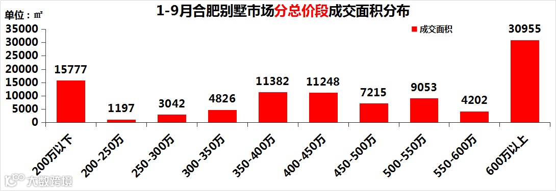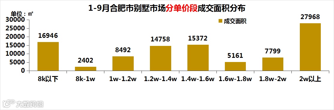 1-9月份,合肥别墅市场共计成交295套,销售面积9.89万㎡,成交金额17.53亿元,均价为17722.49元/㎡;供应量为625套/19.64万㎡,供销比为1.99,市场供大于求。