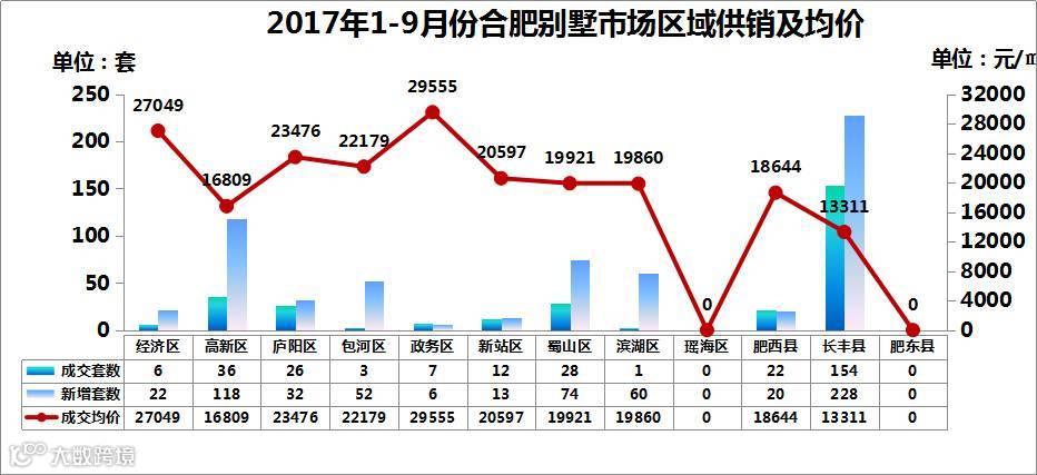 导语:本次主要关注2017年1-9月份合肥别墅市场动态,通过一系列数据指标(供应、成交、均价、排行榜等)来分析1-9月别墅市场详情。