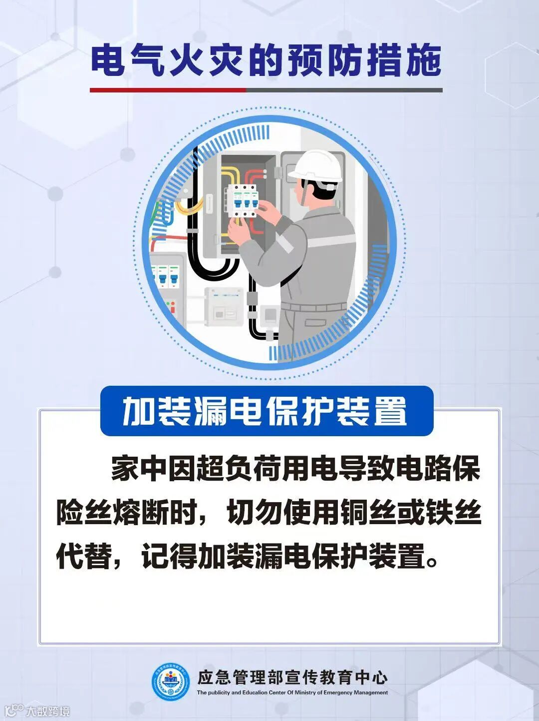 家中用电设备绝缘损坏、电路年久失修、操作失误等均会造成短路。短路产生的热量会引起燃烧,从而导致火灾。