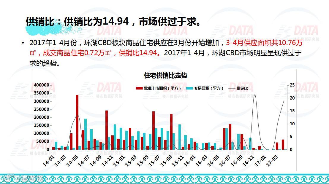 2、受限购影响,2017年滨湖楼市需求下降,加上二手房价大幅回调,观望情绪较浓。市场降温后,导致供给不足、开发商推迟供应,等待后续政策放松的机遇。另外,3、4月上市量不足1000套,但供需关系开始扭转。