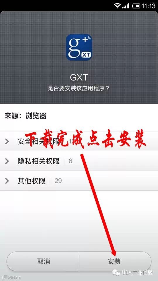 4.然后等待下载,下载完成时在下载列表中找到“guotong.apk”的软件,点击安装。