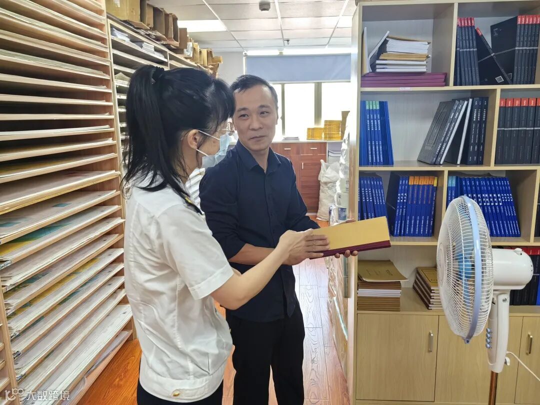 永泰船务负责人为海事局参观人员介绍公司内航海图书资料