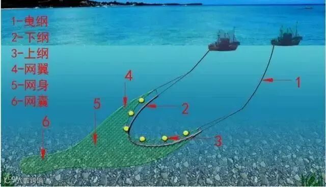 双船对拖作业涉及两艘渔船,它们保持一定距离并共同拖拽一张渔网进行捕鱼。这种作业方式下,网具入水较深。在夜间,通常只有一个驾驶员值班,而其他船员则休息。在收网和放网时,甲板上会开启照明灯,船员们则在甲板上忙碌。